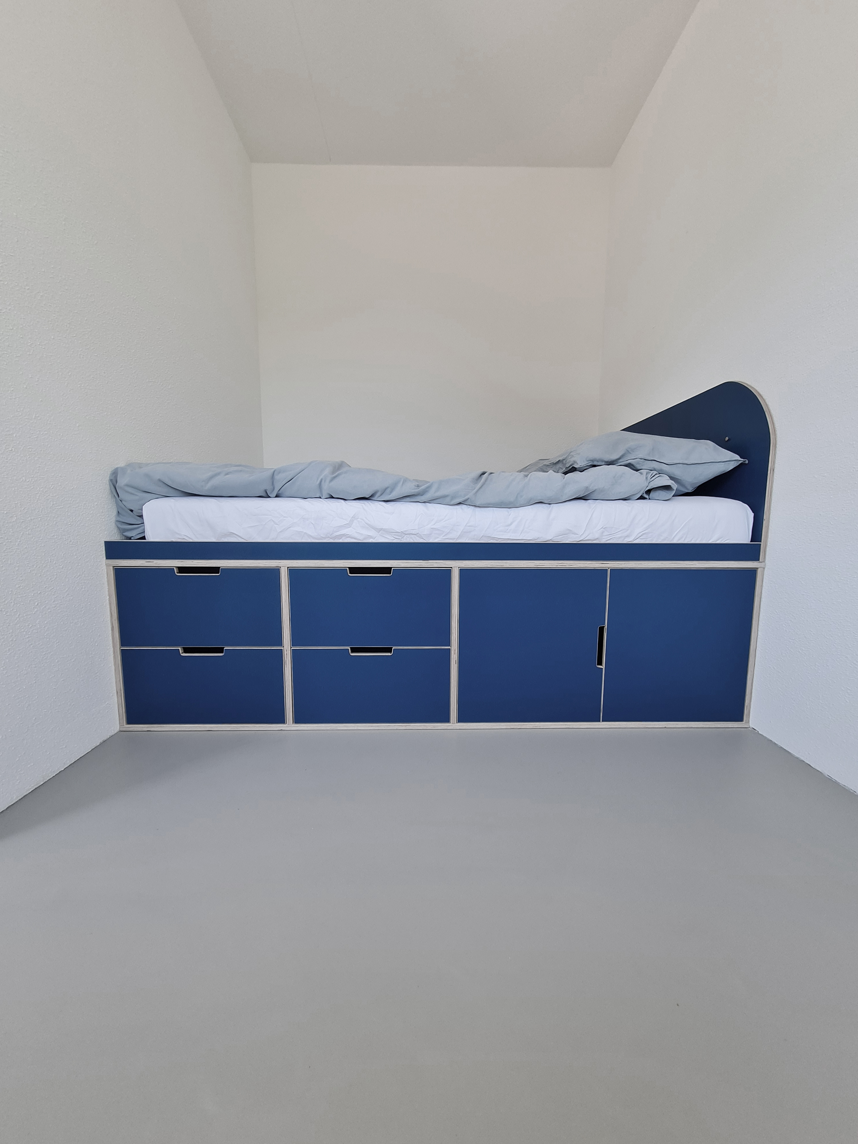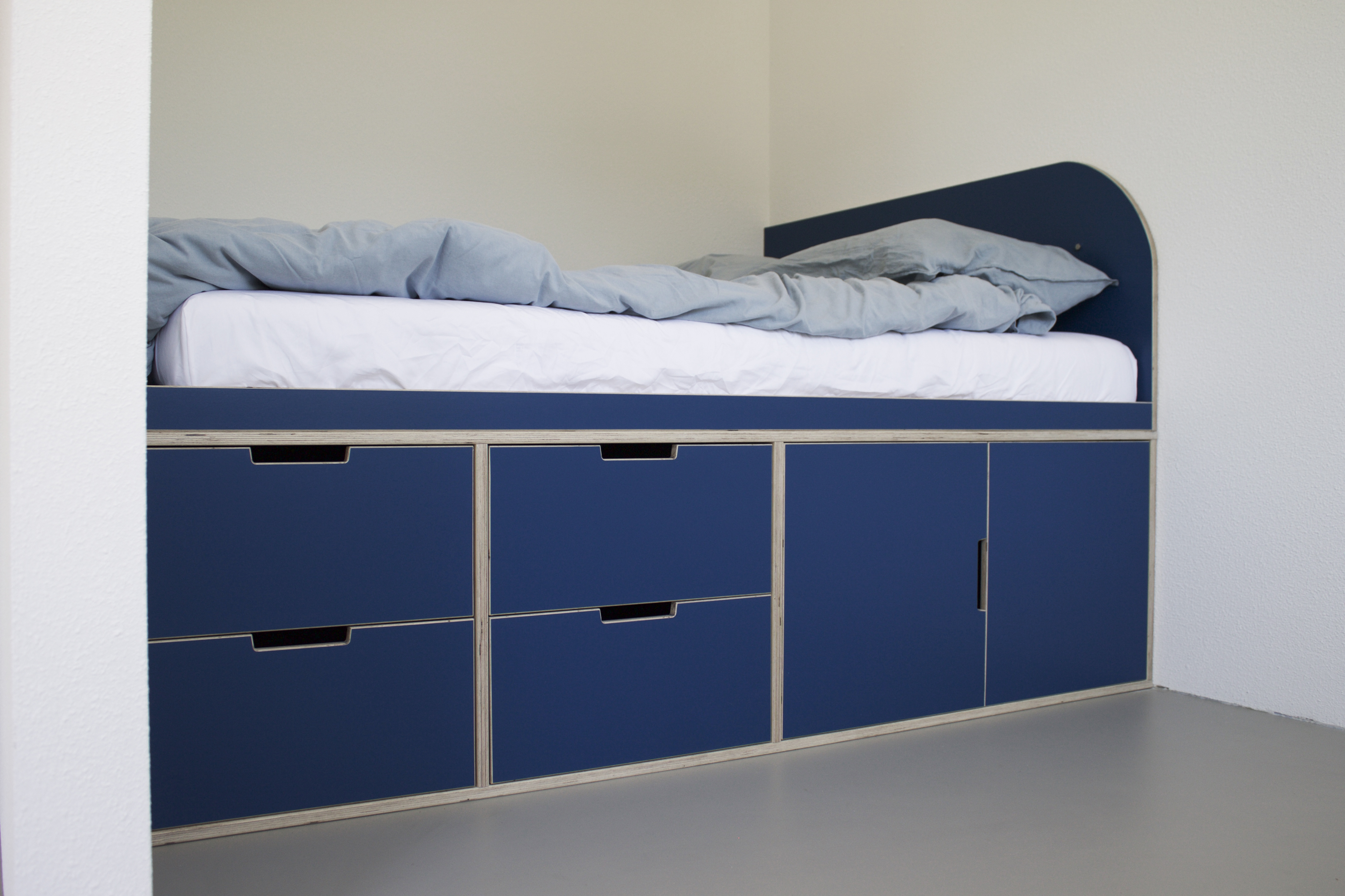 AV Interieurontwerp voorziet hem van een bedkast met vier extra diepe kledinglades en een ‘koffercompartiment’.